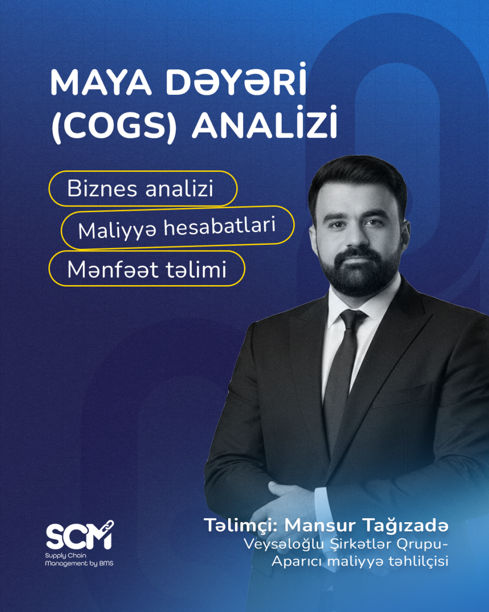 Supply Chain Management by BMS ,"Maya dəyəri (COGS) : Biznes analizi,maliyyə hesabatları və mənfəət " təlimin təşkil edir.